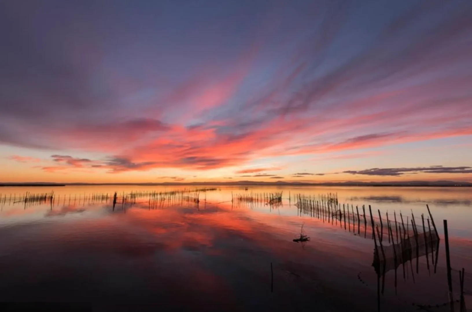 El atardecer en el embarcadero de Pujol es una de las experiencias más especiales que se pueden vivir en L’Albufera de Valencia. Situado junto a la Gola del Pujol, este rincón ofrece una panorámica privilegiada donde el cielo y el agua se funden en tonos dorados, naranjas y rosados, creando una estampa única en uno de los espacios naturales más emblemáticos de Valencia.