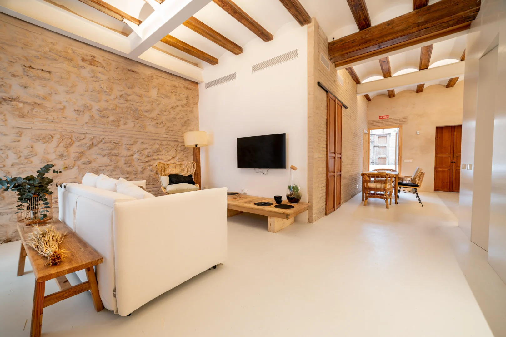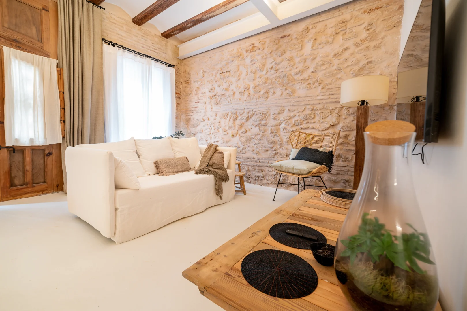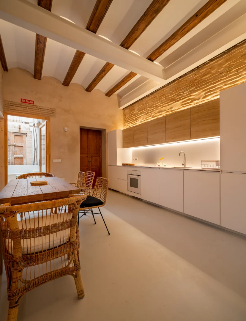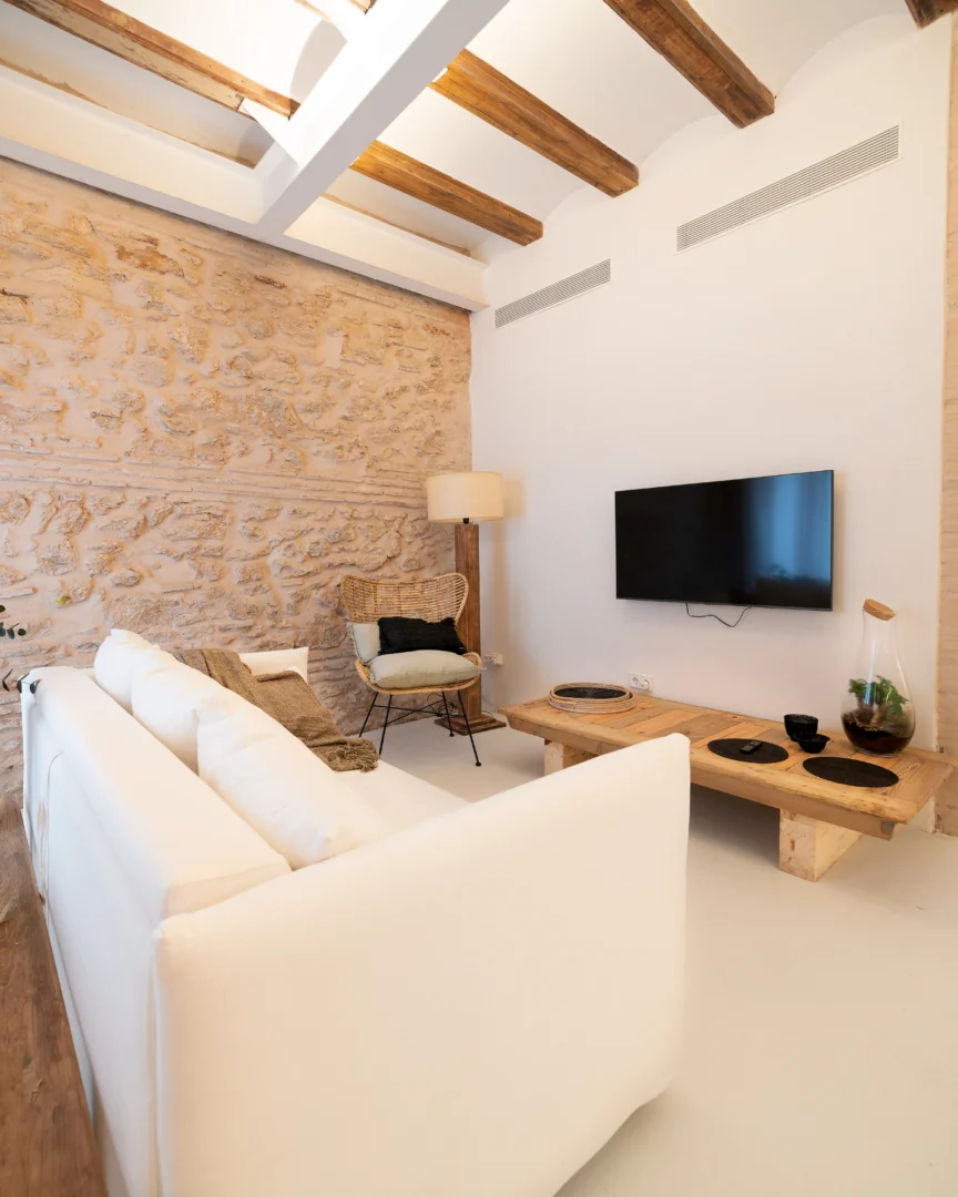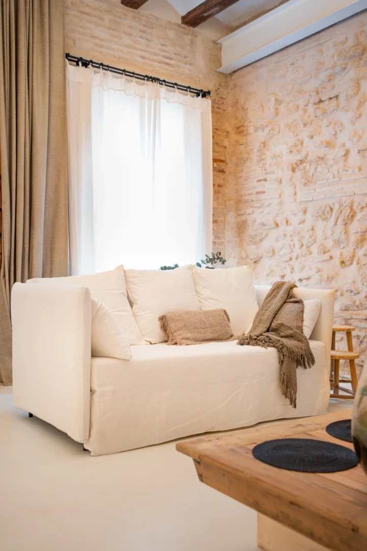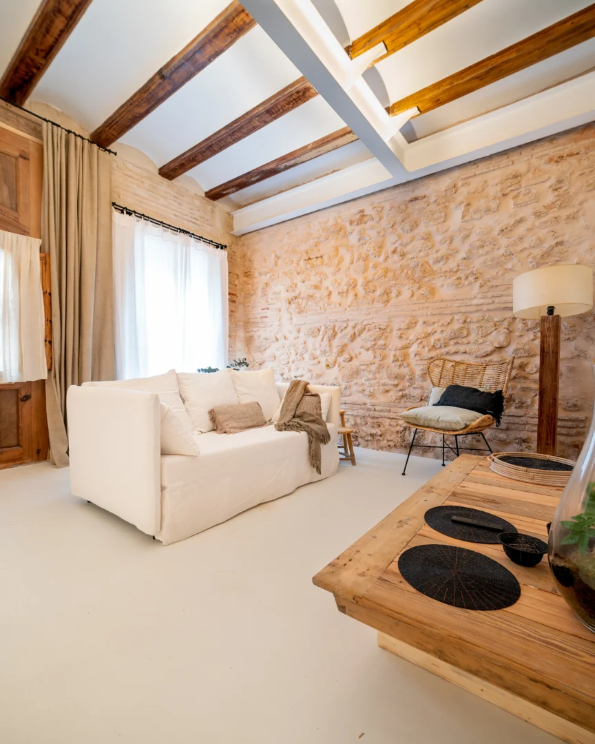 Alójate en esta casa rehabilitada en Valencia, situada a pocos pasos del mar Mediterráneo, donde el diseño y la esencia mediterránea se combinan para ofrecer una experiencia única. Además, las paredes de piedra originales, los acabados en madera natural y la iluminación cálida crean un ambiente acogedor que invita al descanso desde el primer momento.