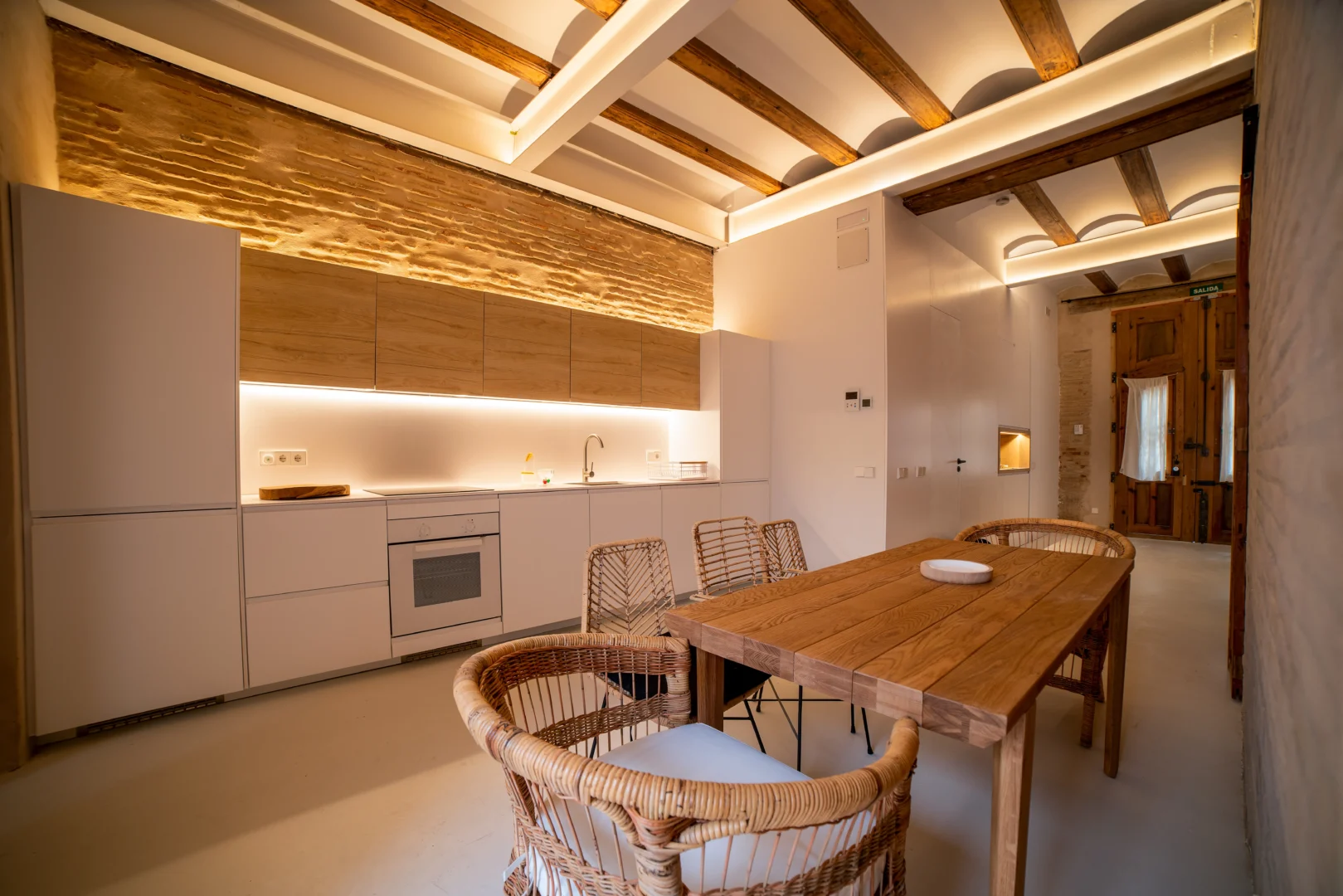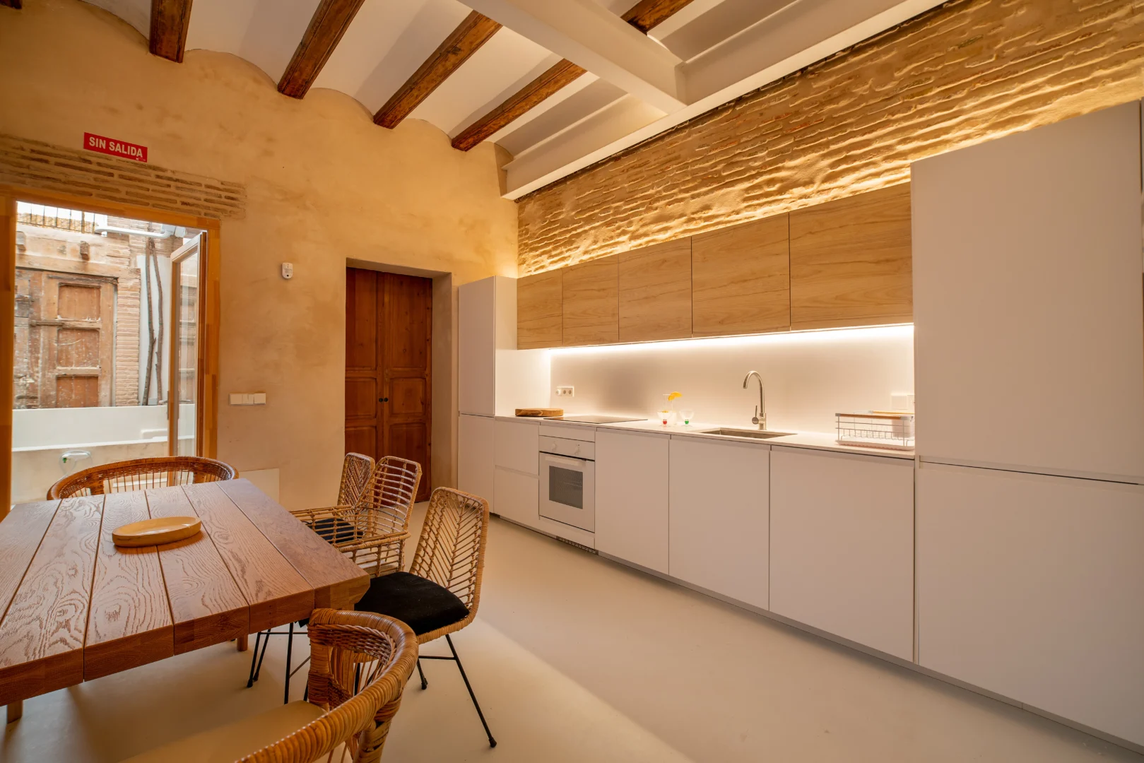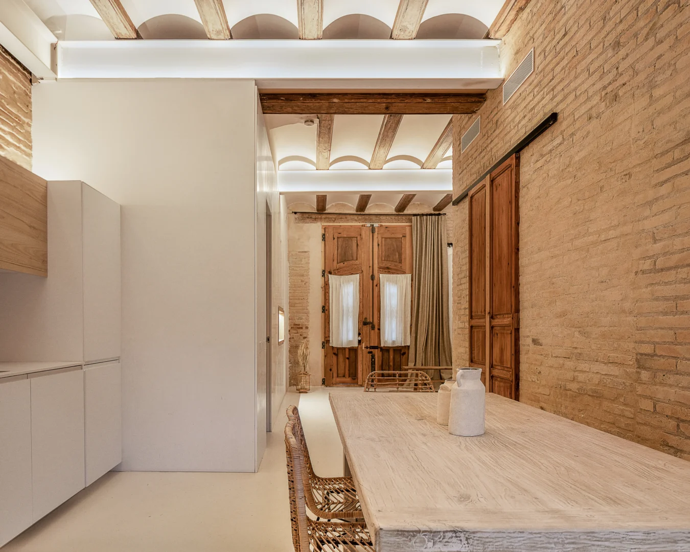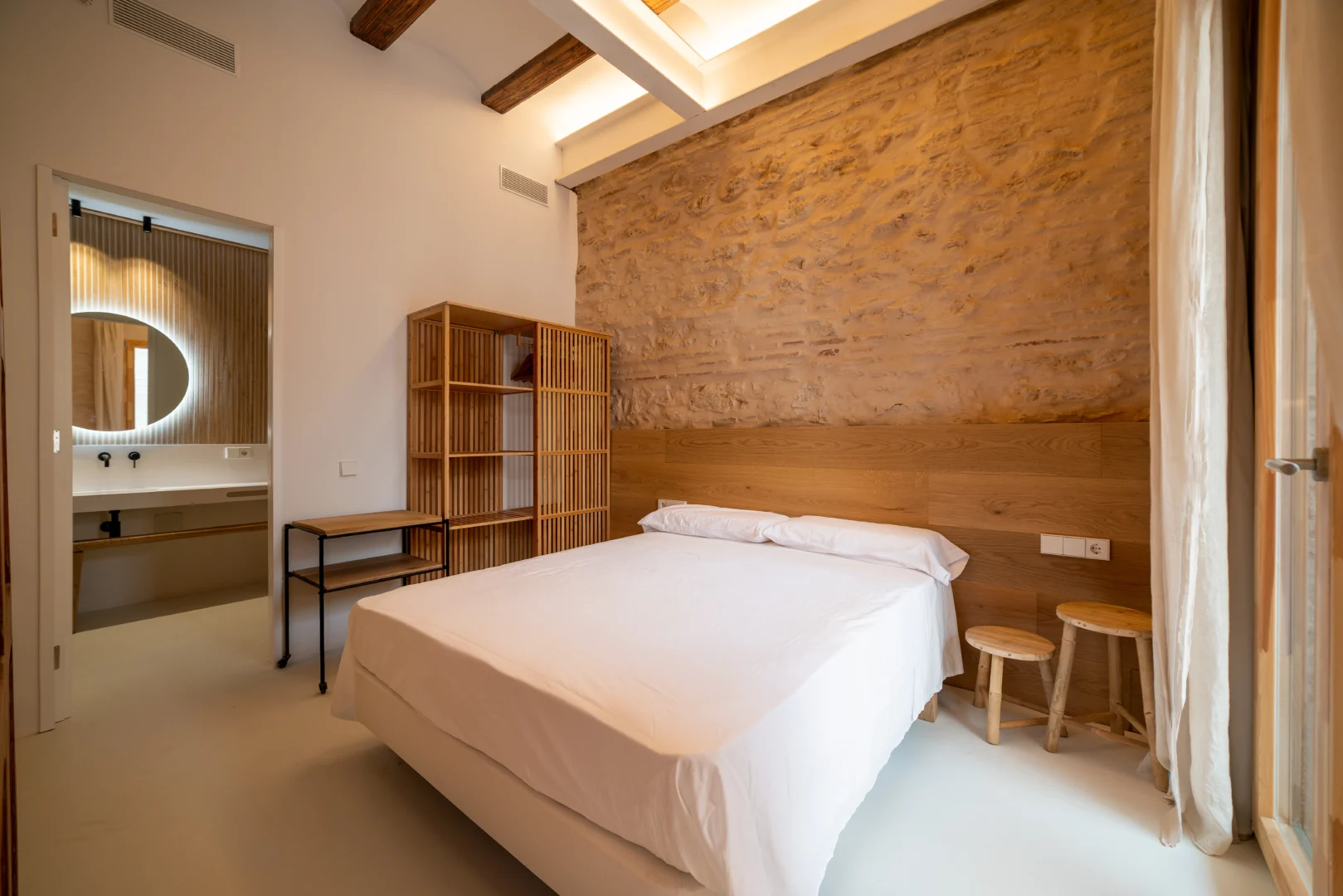 Alójate en esta casa rehabilitada en Valencia, situada a pocos pasos del mar Mediterráneo, donde el diseño y la esencia mediterránea se combinan para ofrecer una experiencia única. Además, las paredes de piedra originales, los acabados en madera natural y la iluminación cálida crean un ambiente acogedor que invita al descanso desde el primer momento.