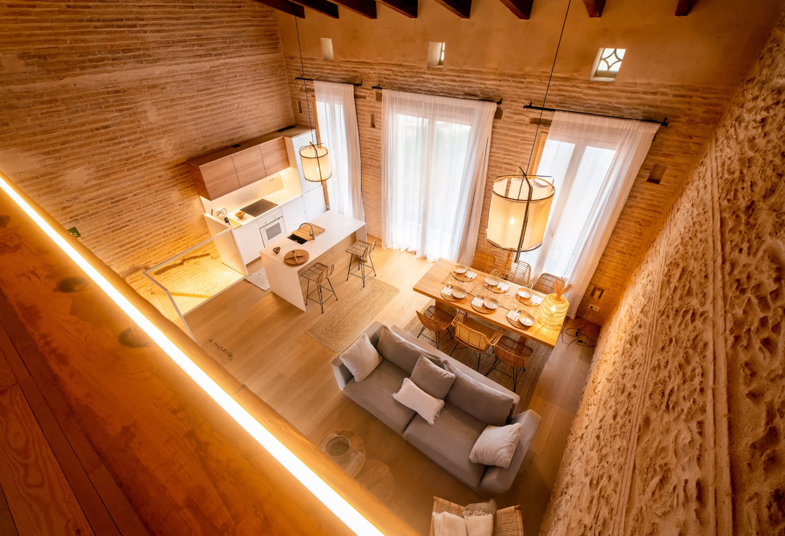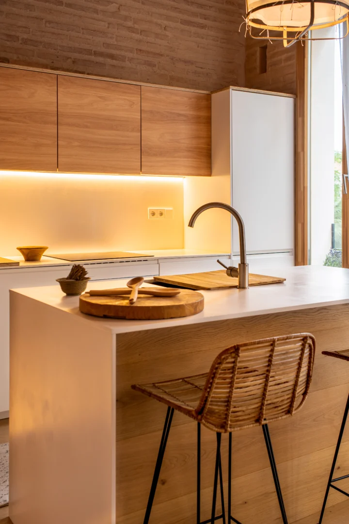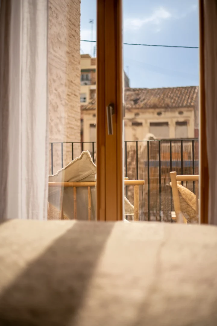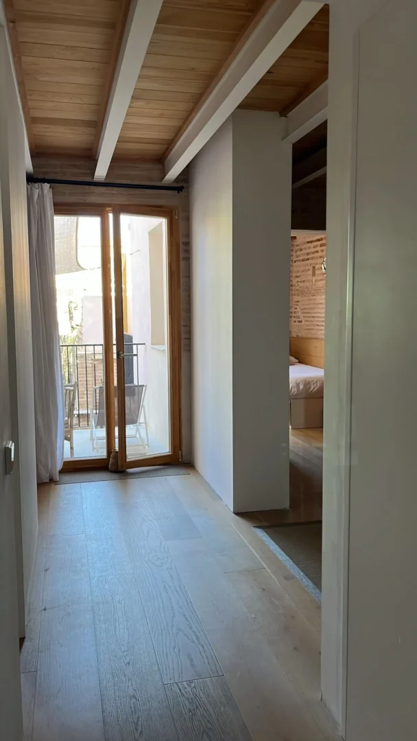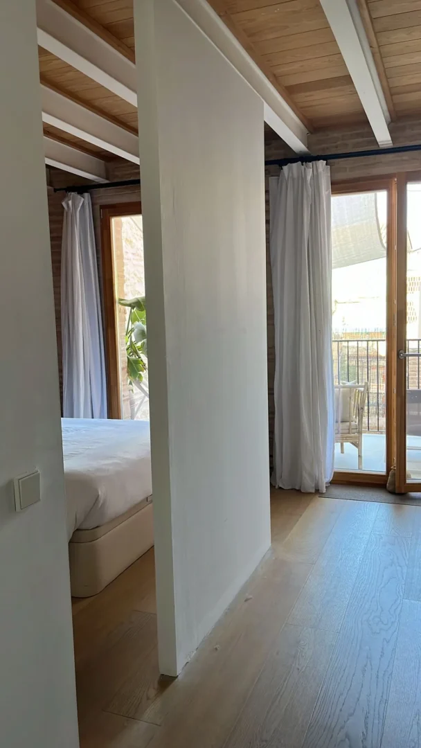 Disfruta de un loft de diseño cerca del mar en Valencia, a solo unos pasos de la playa. Con techos altos de madera, grandes ventanales y un acogedor espacio de concepto abierto, este alojamiento vacacional de estilo mediterráneo combina el encanto histórico con el confort moderno.